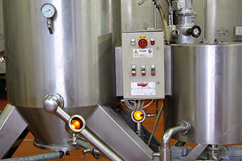 | 攪拌混和 將絞碎的橄欖果肉倒入不鏽鋼槽內攪拌混和,鋼槽的溫度要控制在25度內,這就是俗稱的「冷榨」 | ![]() |